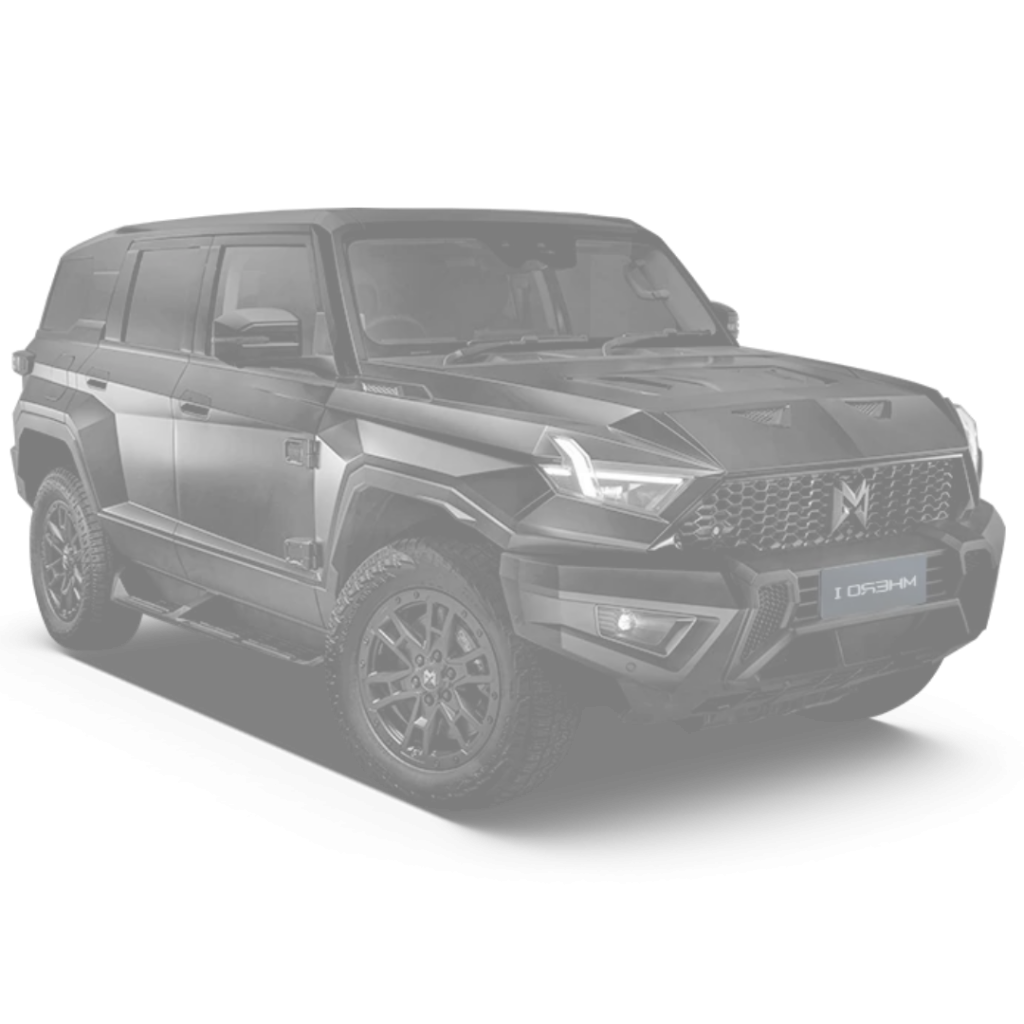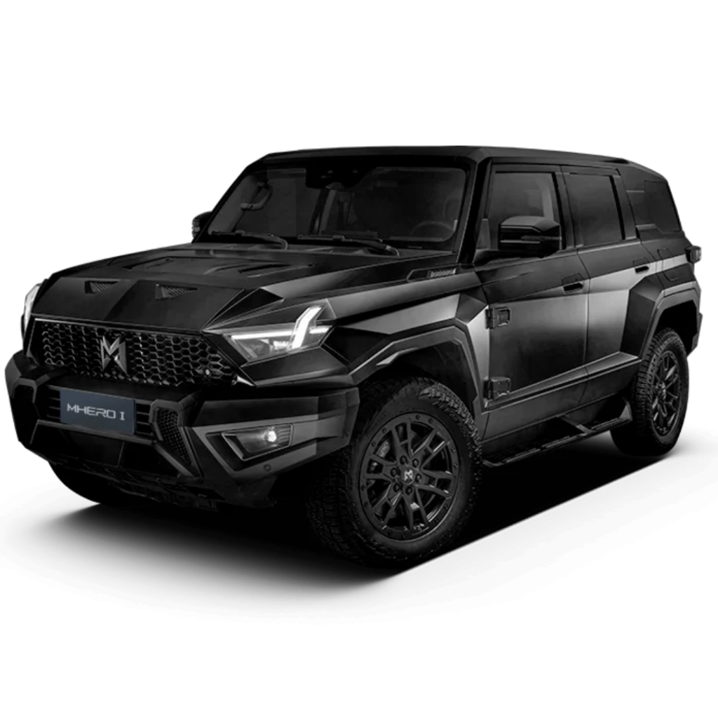 MHERO SUV je ustvarjen za vse, ki si želijo preseči meje običajnega. S svojo dolžino 4.987 mm, širino 2.080 mm in višino 1.935 mm ter medosno razdaljo 2.950 mm, nudi obilico notranjega prostora in izjemno stabilnost na terenu.